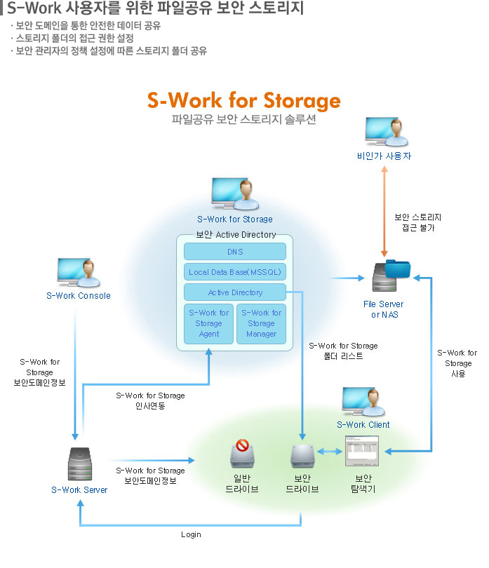 S-Work for Storage´Â S-WorkÀ» »ç¿ëÇÏ´Â »ç¿ëÀÚ°£ÀÇ ¾ÈÀüÇÏ°í ¿øÈ°ÇÑ ÆÄÀÏ °øÀ¯¸¦ À§ÇÑ º¸¾È ½ºÅ丮Áö ¼Ö·ç¼ÇÀÔ´Ï´Ù. S-Work for StorageÀÇ º¸¾È µµ¸ÞÀÎ ¹æ½ÄÀº º¸¾È¸ðµâÀ» Á÷Á¢ ¼³Ä¡ÇÏ¿© °ü¸®ÇÏ´Â ÆÄÀÏ ¼¹ö¿Í´Â ´Þ¸® µµ¸ÞÀÎ ÀÚü¸¦ º¸¾È ¿µ¿ªÈÇÏ´Â ¹æ½ÄÀ¸·Î, º¸¾È µµ¸ÞÀÎ Çϳª¿¡ ´Ù¼öÀÇ Storage Àåºñ¸¦ µî·ÏÇÏ¿© °ü¸®°¡ °¡´ÉÇϸç, ÀÚ¿ø ¿ë·® Áõ°¡¿¡ ź·ÂÀûÀ¸·Î Àû¿ëÀÌ °¡´ÉÇÑ ÀåÁ¡À» °¡Áö°í ÀÖ½À´Ï´Ù. |